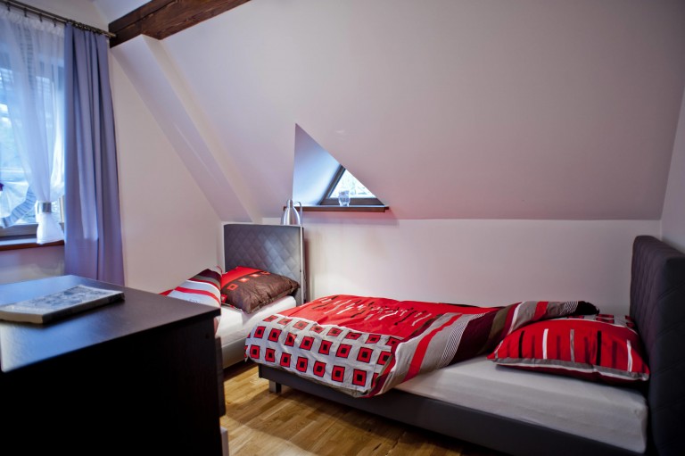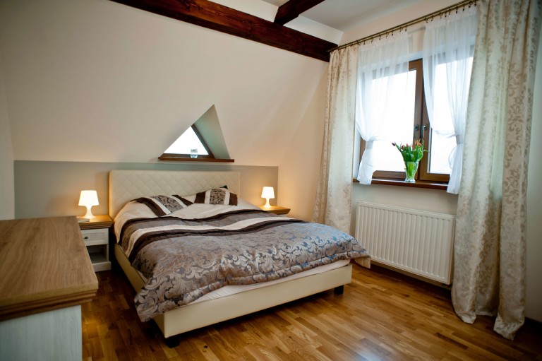 Jedna z trzech dostępnych w apartamencie sypialni, wyposażona w dwuosobowe łóżko małżeńskie.