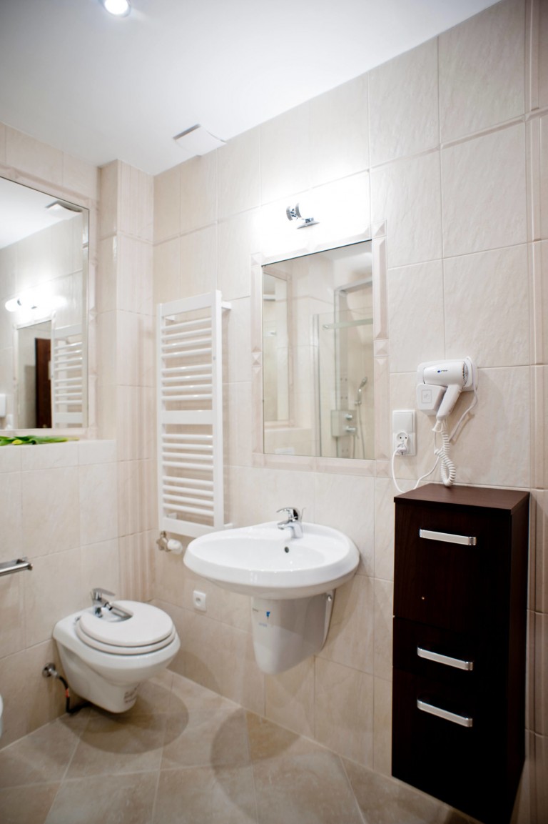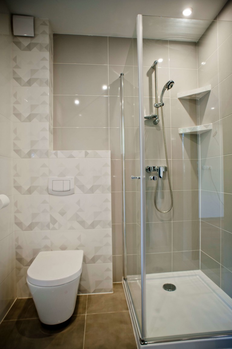 Obydwie wyposażone w wygodne kabiny prysznicowe. Dodatkowo jedna z nich ma bidet i suszarkę do włosów.