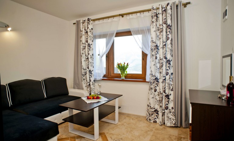 Pokój wypoczynkowy z pięknym widokiem na Tatry